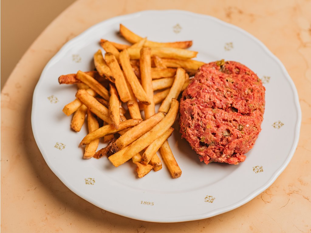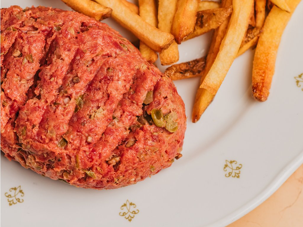 Tatarák Parisian je oblíbený jako hlavní jídlo. Připravujeme ho z hovězího zadního masa z Amasa a kromě vlastní pikantní marinády do něj přidáváme nadrobno nasekané žampiony, kapary, šalotku a kyselou okurku. Podáváme s domácími hranolky.